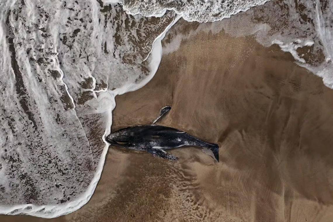 Pinamar: apareció muerto un ejemplar de una ballena jorobada joven en la playa